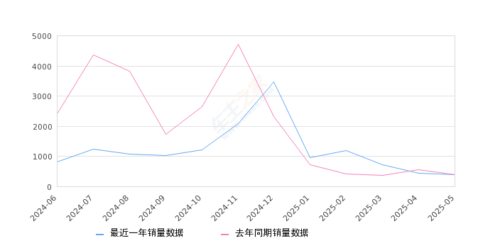 2025年5月,极氪X销量同比增长4.5%,环比下降8.14%;最近12个月中,极氪X销量在2024年12月达到最高,销量为3480辆。