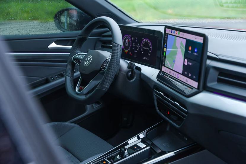座舱以运动为核心:拨片式电子档杆握感好,运动座椅包裹性强,快速变道无晃动;30色流光氛围灯+运动模式仪表盘,营造赛道仪式感。10.25英寸全液晶仪表+12.9英寸中控屏显示清晰,导航同步至仪表更安全,高阶AI助手响应流畅,智能体验不输电车。